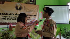 Banyumas | mediasinarpagigroup.com – Bertepatan denga Hari Pers Nasional, Dewan penggalang MTs Maarif NU 2 Cilongok menggelar pendidikan dan pelatihan (diklat) jurnalistik dan kehumasan, Kamis 9 Februari di aula madrasah setempat. Kegiatan dibuka oleh ketua Majelis Pembimbing Gugusdepan (Mabigus) MTs Maarif NU 2 Cilongok Kak Nadzlir Ghozali, S.Pdi M.Pd. Turut hadir pembina putra Kak Agus Priyanto dan pembina putri Kak Henny Purwaningsih.