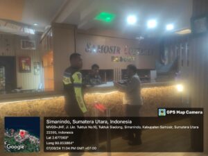 Samosir | mediasinarpagigroup.com – Personil Polsek Simanindo yang tergabung dalam Operasi Hatra Toba 2024 melaksanakan pengamanan selama 24 jam di Hotel Samosir Cottage, lokasi tempat istirahat para Kontingen PON XXI Aceh-Sumut 2024. Kegiatan pengamanan ini dimulai pada tanggal 7 September 2024 dan akan berlangsung hingga 21 September 2024.