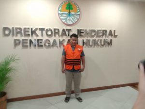 Agus Nugroho bersama Zainul Ahsan Tanjung datang berbarengan sekitar pukul 14.57 WIB langsung menuju kedalam ruangan penyidik Direktorar Jenderal Penegakan Hukum yang berada di Gedung Gedung Manggala Wanabakti KLHK RI Pintu 3 lantai 4.