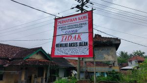 Bahkan warga setempat memasang spanduk pintu masuk jalan bertuliskan “Perhatikan Kami, Kedunglemah Desa Bangunsari Ciamis Tidak Punya Akses Jalan” tulisan ini sangat ironis dengan Desa Bangunsari sebagai wajah Kabupaten Ciamis.