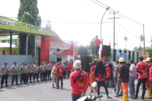 Indramayu | mediasinarpagigroup.com – Polres Indramayu jajaran Polda Jabar melaksanakan pengamanan aksi unjuk rasa yang dilakukan oleh massa buruh dari serikat buruh GASBumi FSBmigas-KASBI Indramayu. Rabu (24/4/2024)