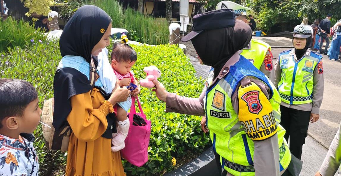 Purbalingga | mediasinarpagigroup.com – Polisi Wanita (Polwan) dari Polres Purbalingga menggelar aksi simpatik dengan membagikan boneka kepada anak-anak yang tengah berkunjung ke sejumlah tempat wisata, Jumat (2/1/2026).