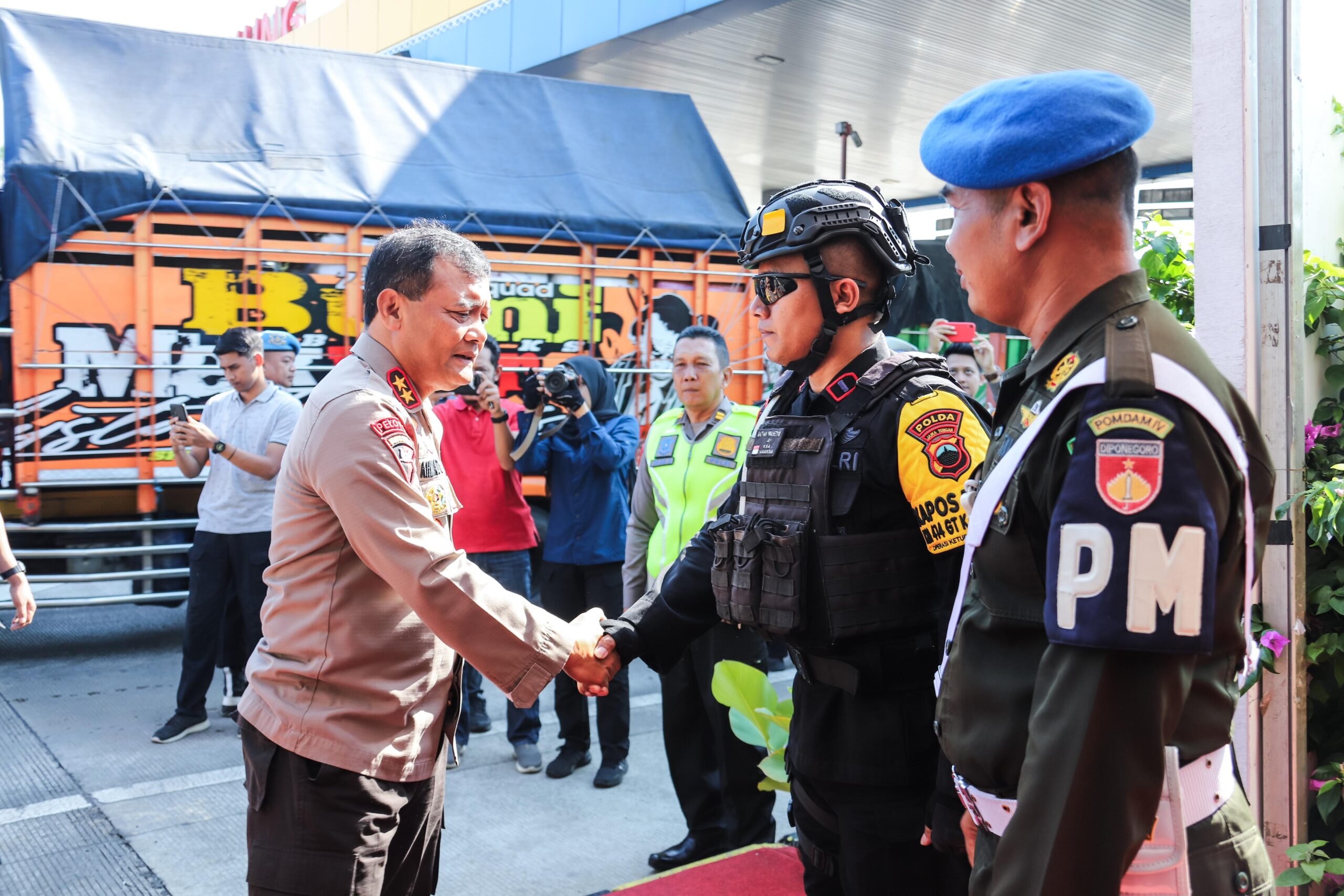 Hadir didampingi Kapolrestabes Semarang Kombes Pol Irwan Anwar dan Dirlantas Kombes Pol Sonny Irawan, Kapolda mengecek kesiapan personel serta fasilitas pendukung guna mengetahui efektifitas posko dalam menjaga Kamseltibcar lantas serta monitoring jumlah kendaraan selama libur Natal dan Tahun Baru.
