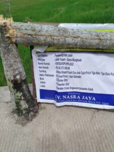 Terkait hal pengerjaan proyekPL pengecoran Jalan rabat beton sepanjang 200m lebih kurang yang di laksanakan di  dama bungkuak jorong Padang Belimbing Nagari Koto Sani Kecamatan x Koto Singkarak yang di duga asal jadi belum genap setahun sudah hancur dan rusak berat dan terkesan mencari untung berlipat ganda yang mutu kwalitas hasil pekerjaannya mengecewakan jalan nya hancur permukaannya kerikilnya banyak yang terlepas hampir keseluruhan nya jalan tersebut terlepas kerikilnya atau rusak berat pekerjaan asal jadi tidak memuaskan ini yang di sebab kan dengan modus pengurangan pemakaian semennya jauh dari standar nya atau kandungan semen yang tidak sesuai sfesifikasi sehingga banyak menimbulkan pertanyaan apakah tidak ada pengawas nya dari pihak Bina marga PUPR kabupaten  Solok yang mengawasinya atau ada dugaan main mata pihak pengawas dengan kontraktor nya kok bisa di VHO hasil pekerjaan proyek ini tutur masarakat