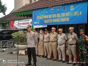 Jakarta | mediasinarpagigroup.com – Selasa (18/4) diadakan Kegiatan Apel Pengamanan Hari Raya Idul Fitri 1444 H / 2023 M Kecamatan Mampang Prapatan berlokasi di halaman Kantor Kecamatan Mampang Prapatan berlangsung pada pukul 15.40 WIB yang dipimpin langsung oleh Camat Mampang Prapatan, Ujang Harmawan dan dihadiri oleh Kapolsek Mampang Prapatan, Kompol H. Mashuri, S.H., M.H., Danramil Mampang Prapatan, Mayor Inf Dasuki, Wakil Camat Mampang Prapatan, Rafli Husein, Sekretaris Camat Mampang Prapatan, Satia, Lurah Bangka, Firdaus A Rois, Lurah Kuningan Barat yang juga menjabat plt Lurah Tegal Parang, Agus Muharam, Lurah Mampang Prapatan, Sulastri, Lurah Pela Mampang, Yunaenah, sektoral Dishub, Satpol PP, PTSP, Kependudukan, Lingkungan Hidup, Damkar, FKDM, dan lain – lain.