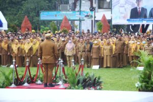 Dengan penuh semangat, para ASN menjawab, “Siap!”, menggema di seluruh alun-alun.