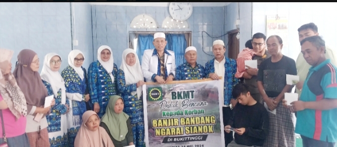 Ketua BKMT Sumatra Barat Abdul Azis menyebutkan bantuan kita salurkan kepada penerima bantuan sejumlah 14 KK yang terdampak bencana banjir bandang di Ngarai Bawah RT 07, selain itu Abdul Azis juga memafarkan sumber dana bantuan yang di kumpulkan dengan jumlah yang didapatkan dari donasi jemaah BKMT yang berada di Sumatra Barat maupun di luar Sumatra Barat, BKMT telah menerima pengumpulan donasi sejumlah lebih kurang Rp 230 jt yang akan di salurkan keberbagai titik daerah yang mengalami musibah bencana alam, di dua Kabupaten di Sumatra Barat