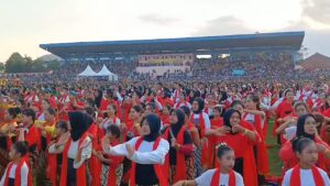 Banyumas | mediasinarpagigroup.com – Perhelatan Banyumas 10.000 Lengger Bicara yang digelar Sabtu (22/6/2024) sore di Gor Satria Purwokerto berjalan lancar. Ribuan orang beragam usia, dan jenis kelamin semua tampil sebagai Penari Lengger Banyumas. Acara ini merupakan pencatatan rekor MURI dengan target sebanyak 10 ribu lengger yang menari bersama, dalam tajuk “Banyumas 10 Ribu Lengger Bicara”.