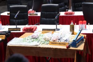 “Dan kami menemukan barang bukti happy water dan keripik pisang. Dari jumlah total barang bukti yang kita amankan, ada 426 bungkus keripik pisang berbagai ukuran dan 2.022 botol happy water dan masih ada 10 kilogram bahan baku narkobanya,” jelas Kabareskrim dalam konferensi pers, Jumat (3/11/23).