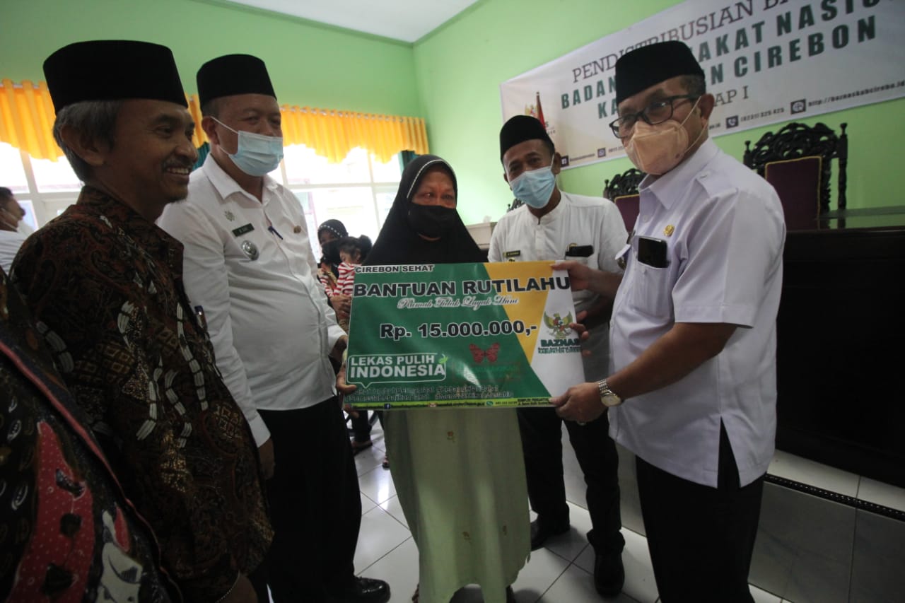 Kabupaten Cirebon | mediasinarpagigroup.com – Badan Amil Zakat (BAZ) Kabupaten Cirebon, kembali menyalurkan bantuan dengan nilai sekitar Rp107 juta. Nilai sebesar itu diperuntukkan untuk berbagai macam bantuan, seperti pembelian kursi roda bagi penyandang disabilitas. Juga untuk bantuan pesantren, rutilahu dan beasiswa anak tidak mampu.
