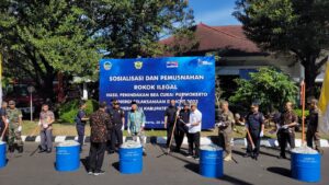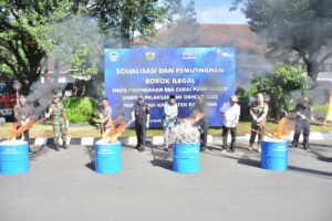 Banyumas | mediasinarpagigroup.com – Kantor Wilayah Bea Cukai Purwokerto bersama Pemerintah Daerah Kabupaten Banyumas dan Aparat Penegak Hukum memusnahkan rokok ilegal pada Jum’at (28/7). Pemusnahan 2.034.334 batang rokok ilegal dan 620 gram tembakau iris dilakukan di halaman Pendopo Si Panji.