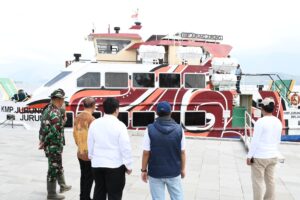 Samosir | mediasinarpagigroup.com – KMP Jurung-Jurung melakukan pelayaran perdana ke Kabupaten Samosir.  Bupati Samosir Vandiko T. Gultom dan Wabup Martua Sitanggang menyambut baik dan ikut berlayar dari  Water Front City Pangururan menuju arah Sibea-bea, Jumat 22/03.