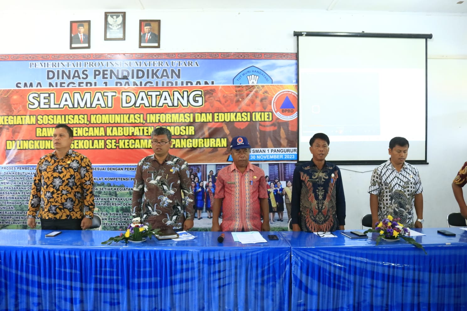Samosir | mediasinarpagigroup.com – Bupati Samosir diwakili Asisten I Drs. Tunggul Sinaga, M.Si., membuka pelaksanaan Sosialisasi Komunikasi, Informasi dan Edukasi (KIE) Rawan Bencana Kabupaten Samosir dilingkungan Sekolah Se-Kecamatan Pangururan. Kegiatan ini digelar oleh Badan Penanggulangan Bencana Daerah Kabupaten Samosir di Aula SMA Negeri 1 Pangururan, Kamis (30/11).