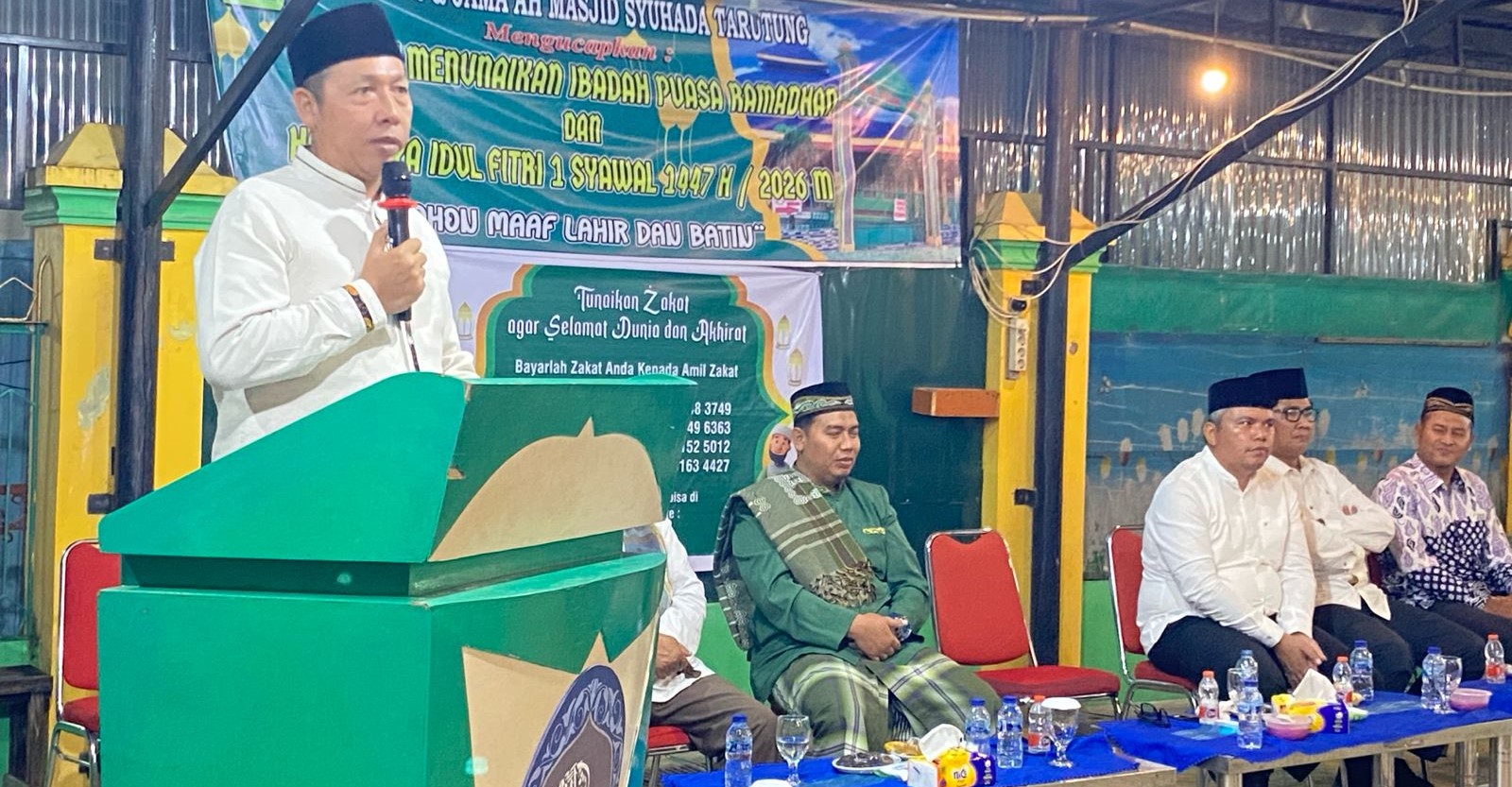 Taput | mediasinarpagigroup.com – Bupati Tapanuli Utara Dr. Jonius Taripar Parsaoran Hutabarat, S. Si, M. Si bersama Wakil Bupati Dr. Deni Parlindungan Lumbantoruan, M. Eng dan Sekdakab. Drs. Henry M. M Sitompul, M. Si buka bersama (Bukber) dengan jemaah Mesjid Syuhada Tarutung, Tarutung. Jumat, 13 Maret 2026.