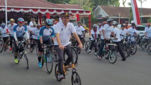Banyumas | mediasinarpagigroup.com – Bupati Banyumas Achmad Husein mengikuti Gowes Peduli Sampah mengampanyekan aksi Jelajah Bersih Negeri 2023, Rabu 15 Februari 2023. Kegiatan mengambil start dari halaman Pendopo Sipanji menyusuri jalan di Purwokerto dan finish di Auditorium Universitas Jenderal Soedirman Purwokerto. Kampanye ini dilakukan oleh Kementerian Lingkungan Hidup dan Kehutanan (KLHK) dalam memperingati Hari Peduli Sampah Nasional (HPSN) 2023 yang bertema Tuntas Kelola Sampah untuk Kesejahteraan Masyarakat.