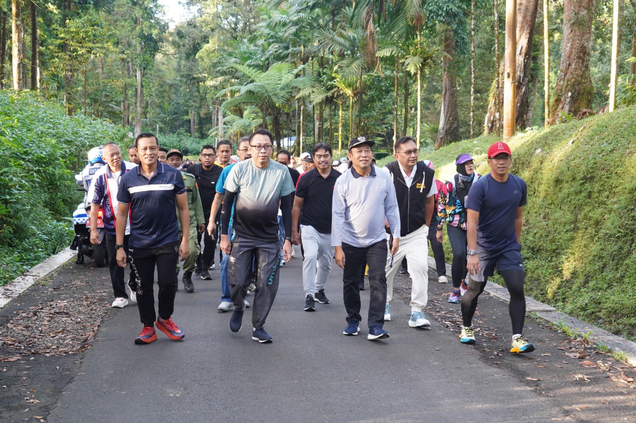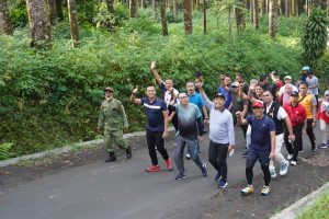 Banyumas | mediasinarpagigroup.com – Bupati Banyumas Achmad Husein didampingi Ketua TP PKK Kabupaten Banyumas Ny Erna Husein ajak Bupati CilacapTatto Suwarto Pamuji beserta Ny Tety Tatto Pamuji bersama Forkopimda  Banyumas dan Cilacap melakukan jalan sehat menikmati segarnya alam Baturaden pada Jum’at pagi (5/8/2022). Tak sekedar jalan sehat biasa, kegiatan ini juga dimaksudkan untuk memperkenalkan wisata alam yang disuguhkan dengan menikmati udara yang masih segar dengan pepohonan hijau rimbun.