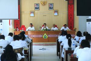 Samosir | mediasinarpagigroup.com – Mengawali tahun 2023, Bupati Samosir, Vandiko T. Gultom bersama Wabup, Martua Sitanggang didampingi Pj. Sekda, Waston Simbolon dan Asisten II, Hotraja Sitanggang memimpin rapat kerja awal tahun di Aula Kantor Bupati Samosir, 04/01.