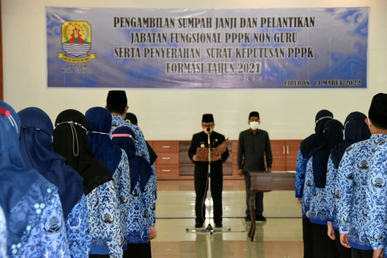 Cirebon, mediasinarpagigroup.com – Bupati Cirebon, Imron, melantik 56 Pegawai Pemerintah dengan Perjanjian Kerja (PPPK) untuk bidang kesehatan. Menurutnya, pelantikan tersebut dilakukan, karena Kabupaten Cirebon masih membutuhkan tenaga kesehatan. Sementara, ada tiga indikator utama dalam pengukuran Indeks Pembangunan Manusia (IPM). Ketiga indikator tersebut adalah kesehatan, tingkat pendidikan dan indikator ekonomi.