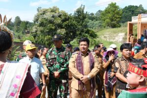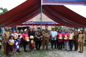 Samosir | mediasinarpagigroup.com – Bupati Samosir Vandiko T. Gultom membagikan bantuan pupuk organik gratis kepada seluruh kelompok tani di Desa Pardomuan I dan Huta Tinggi Kecamatan Pangururan pada acara Bunga Desa pada dua desa tersebut, 06/02.