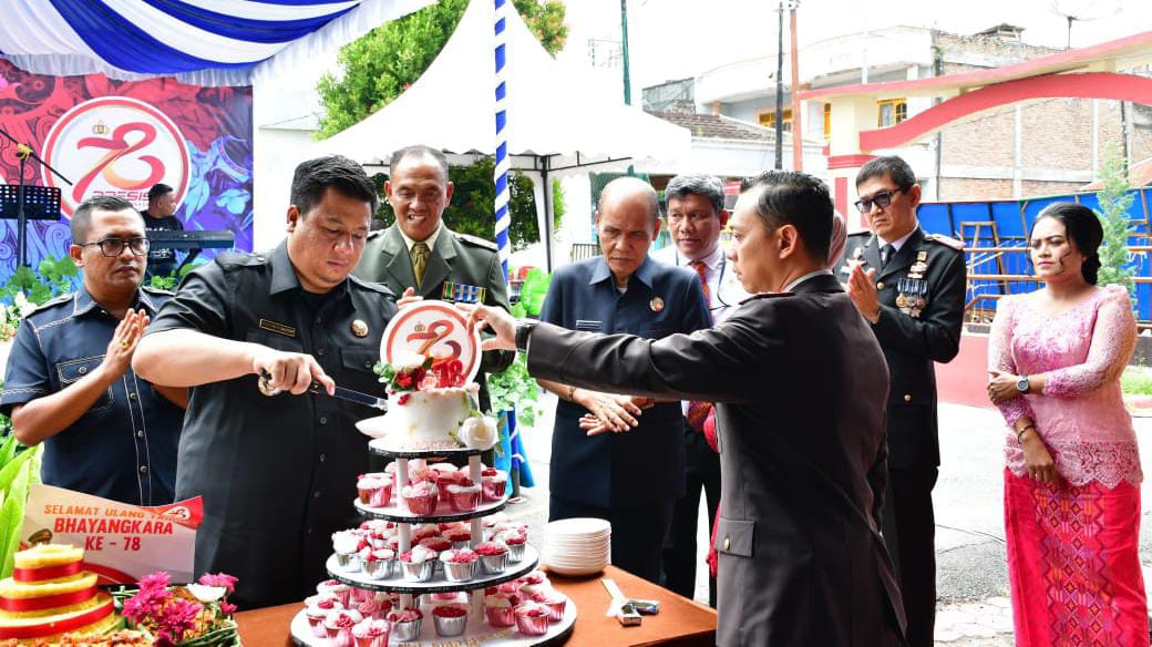 Dalam kesempatan tersebut, Bupati Samosir Vandiko Timotius Gultom, ST menyampaikan selama HUT Bhayangkara Ke-78 kepada segenap anggota Polri khususnya jajaran Polres Samosir.