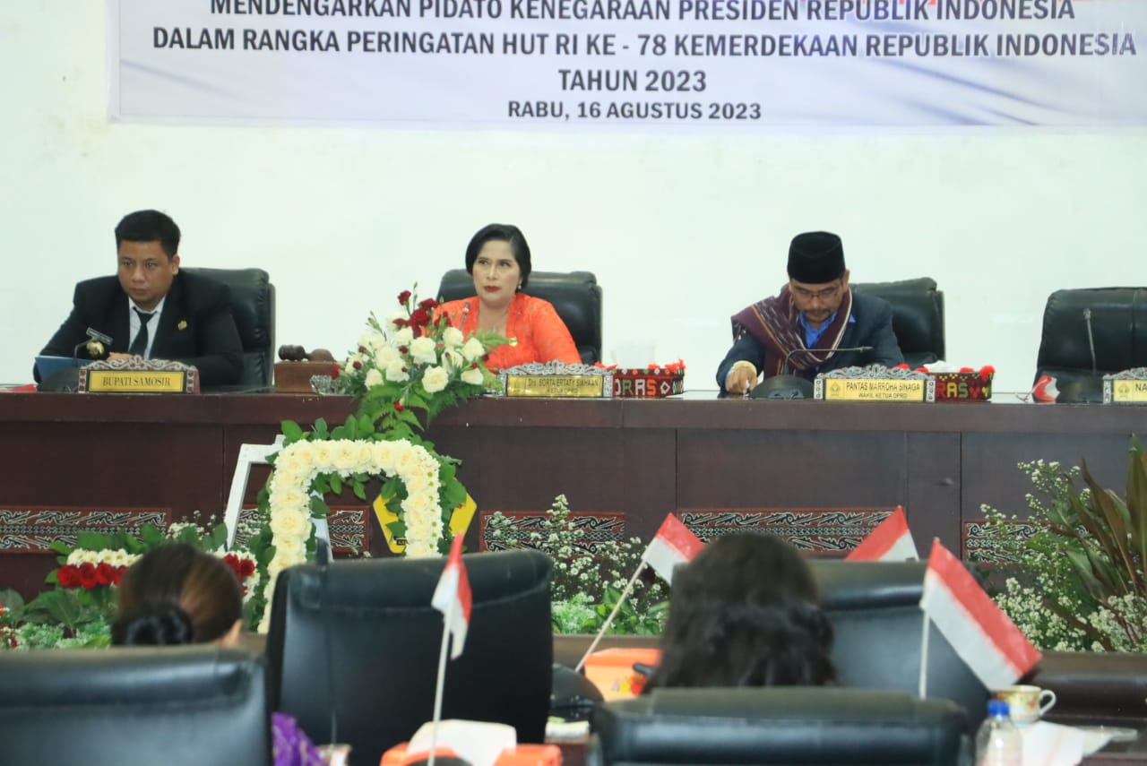Setelah dibuka oleh Ketua DPRD Samosir Sorta E. Siahaan, sidang dilanjutkan dengan mendengarkan Pidato Kenegaraan Presiden Republik Indonesia Ir. Joko Widodo dalam  Sidang Tahunan MPR RI dan Sidang Bersama DPR-DPD RI Tahun 2023, langsung  dari Gedung Nusantara MPR/DPR/DPD RI, Senayan, Jakarta, yang ditayangkan langsung secara virtual menggunakan layar lebar.