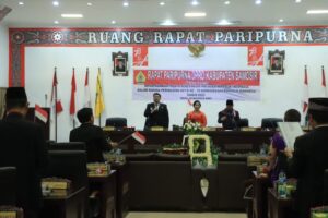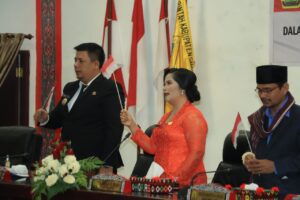 Samosir | mediasinarpagigroup.com – Bupati Samosir Vandiko T. Gultom, ST mengikuti Rapat Paripurna DPRD Kabupaten Samosir dengan agenda mendengarkan Pidato Kenegaraan Presiden Republik Indonesia Ir. Joko Widodo pada Sidang Tahunan Majelis Permusyawaratan Rakyat (MPR) RI dan Sidang Bersama DPR – DPD RI dalam rangka peringatan HUT Ke-78 Kemerdekaan RI Tahun 2023, yang digelar di Ruang Paripurna Gedung DPRD Kabupaten Samosir, Rabu (16/8).