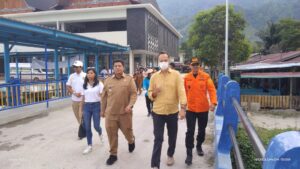 Samosir | mediasinarpagigroup.com – Bupati Samosir Vandiko T. Gultom, ST bersama Deputi Bidang Koordinasi Pariwisata dan Ekonomi Kreatif Kemenkomarves Odo RM. Manuhutu dan Perwakilan KL : BMKG, BPTD, KSOPP Danau Toba dalam survey dan monitoring homologasi untuk persiapan Event AQUABIKE World Championship di Pelabuhan Ambarita, Kecamatan Simanindo, Kabupaten Samosir, Selasa (4/4).