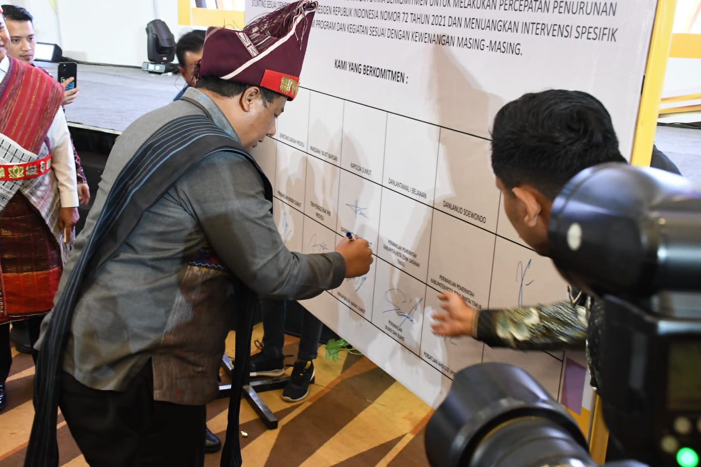 Dalam kesempatan yang sama Bupati Samosir mewakili daerah Zona dataran tinggi bersama Kepala Daerah lainnya melakukan penandatanganan bersama komitmen rembuk stunting, dalam rangka percepatan penurunan stunting di Sumut tahun 2025. (Kirman)
