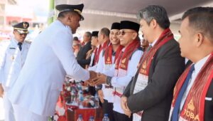 Simalungun | mediasinarpagigroup.com – Bupati Simalungun H Anton Achmad Saragih bersama Wakil Bupati Benny Gusman Sinaga menghadiri Peringatan Hari Jadi Kabupaten Toba yang Ke – 26, yang berlangsung di lapangan Sisingamangaraja XII, Balige, Senin (10/3/2025).