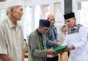 Usai menyampaikan sambutan, selanjutnya Bupati menyerahkan bantuan untuk Masjid Nurul Hikmah Kelurahan Aman Sari berupa sajadah panjang dan loudspeaker portable dan Uang 5 Juta Rupiah kepada BKM Masjid Nurul Hikmah Kelurahan Amansari.