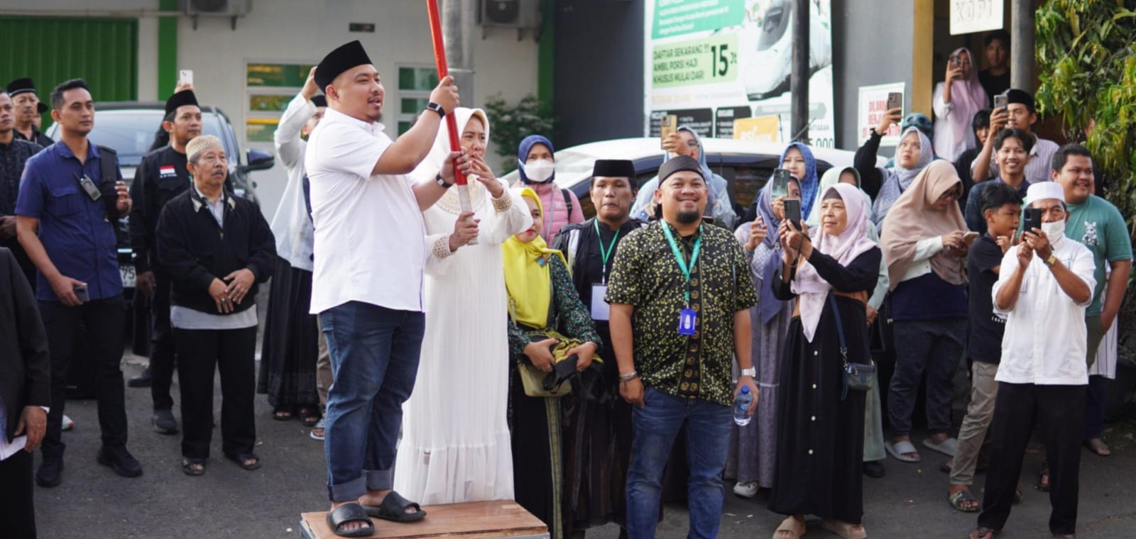 Acara dilanjutkan dengan pelepasan secara langsung jamaah umrah yang terdiri dari 9 bus oleh Kang Rey bersama Anggota Komisi I DPR RI Hj. Elita Budiati yang akrab disapa Bunda Elita.