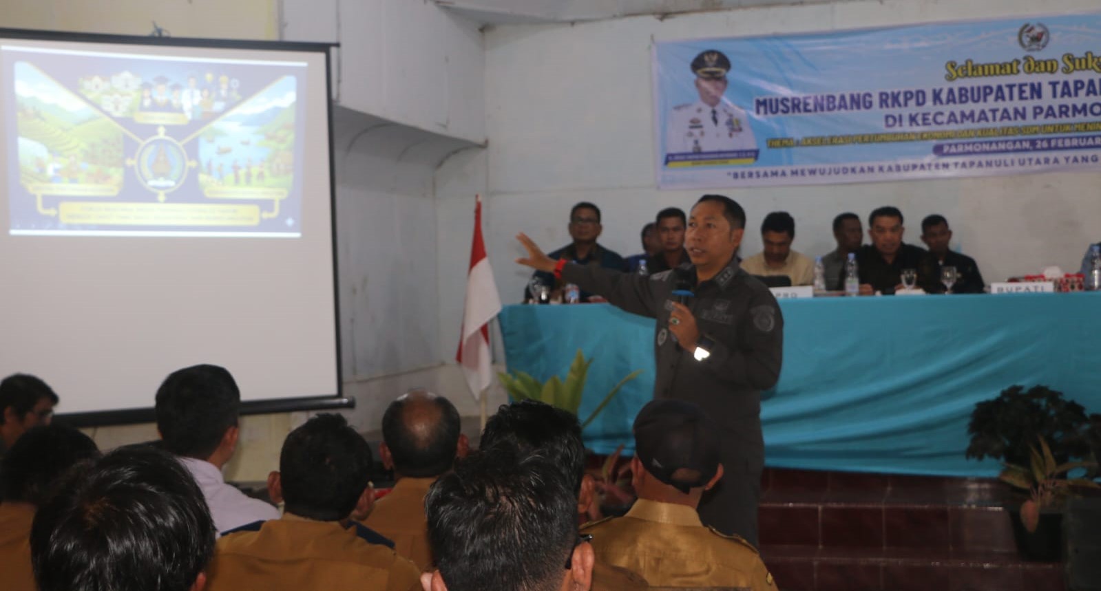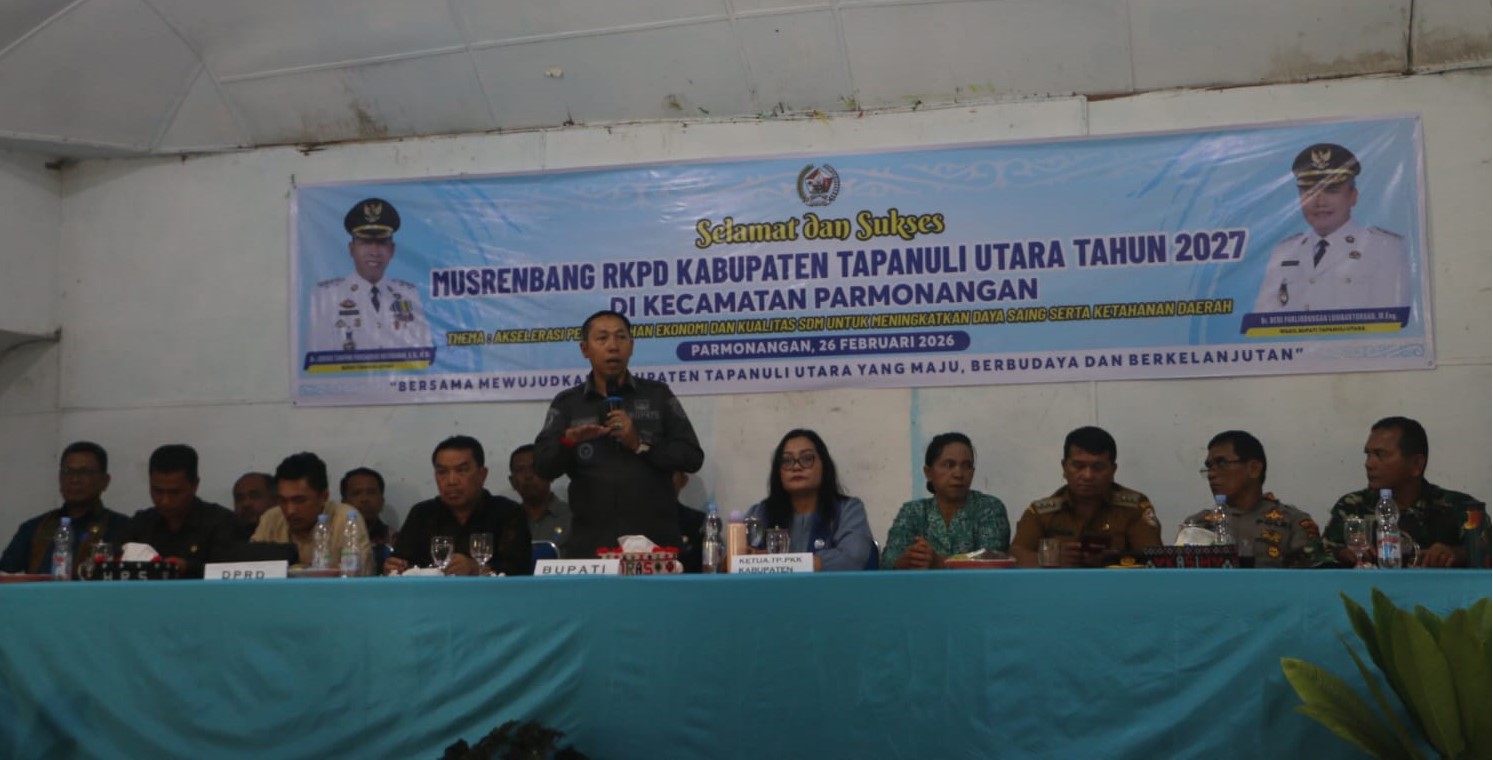 Taput | mediasinarpagigroup.com – Bupati Tapanuli Utara, Jonius Taripar Parsaoran Hutabarat, S.Si., M.Si menegaskan arah pembangunan Kabupaten Tapanuli Utara ke depan akan difokuskan pada tiga aspek utama, yakni penguatan sumber daya manusia (SDM), pengembangan sektor pertanian, serta pembangunan berbasis budaya dan pariwisata yang disampaikan pada saat Musyawarah Perencanaan Pembangunan (Musrenbang) Kecamatan Parmonangan yang dilaksanakan di HKBP Parmonangan, Kamis (26/2/2026).