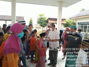 Kabupaten Cirebon | mediasinarpagigruop.com – Detik-detik menjelang hari kemenangan orang Muslim dalam menjalankan ibadah puasa Ramadan, Camat Kapetakan gandeng semua Kuwu se Kecamatan serta perwakilan dari Puskesmas setempat beserta Kepala Puskesmas, dan dari Korwil Pendidikan, untuk memberikan santunan kepada anak yatim, Jumat (29/04) pagi tadi.