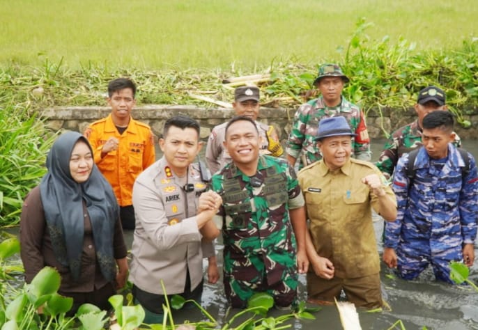 Subang | mediasinarpagigroup.com – Dalam rangka mencegah banjir di musim penghujan Kapolres Subang AKBP Ariek Indra Sentanu bersama Dandim 0605/Subang Letkol Inf Bambang Raditya rela terjun ke sungai guna membersihkan tumbuhan liar eceng gondok di sungai wilayah Pantura tepatnya Desa Cilamaya Girang, Kecamatan Blanakan, Kabupaten Subang, Jawa Barat, Senin (15/1/2024) sekitar pukul 08.30 WIB.