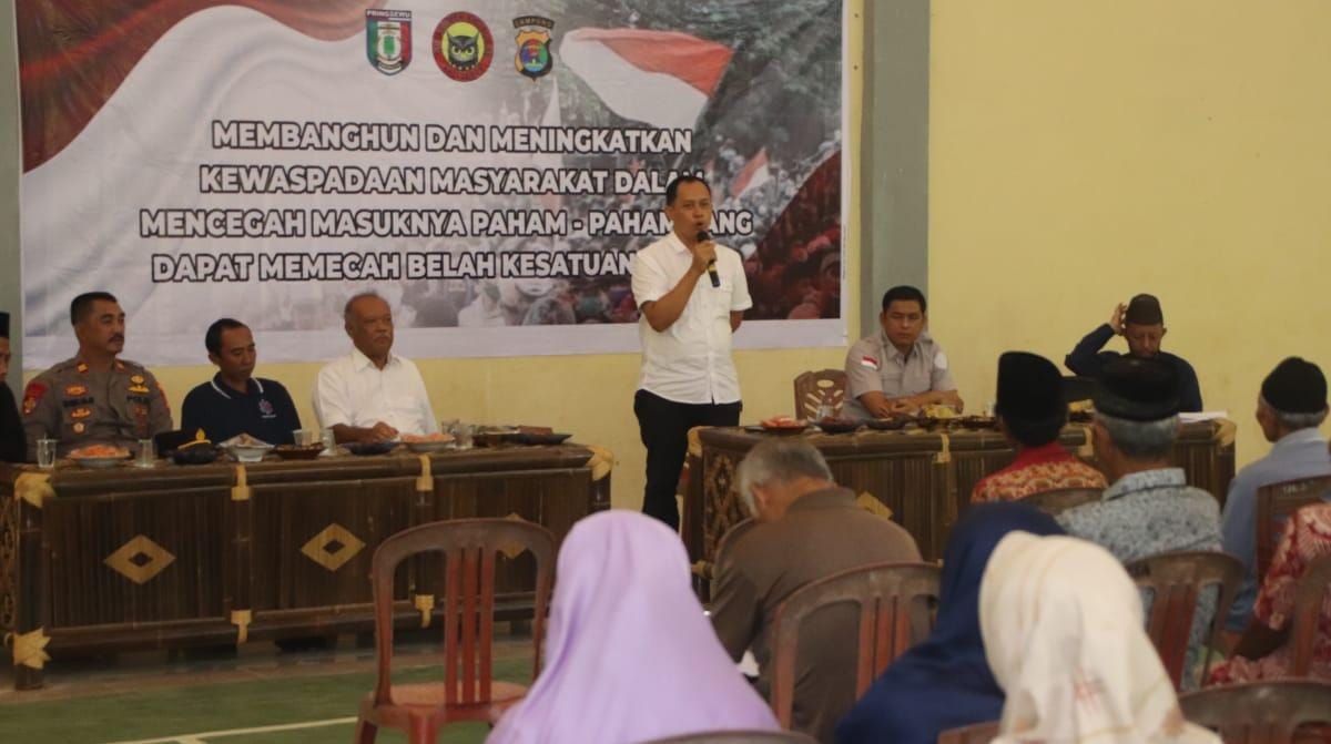 Kapolsek Pagelaran Iptu Hasbulloh mewakili Kapolres Pringsewu AKBP Benny Prasetya mengatakan, penyuluhan ini digelar untuk membangun dan meningkatkan kewaspadaan masyarakat dalam mencegah masuknya paham paham yang dapat memecah belah persatuan bangsa.
