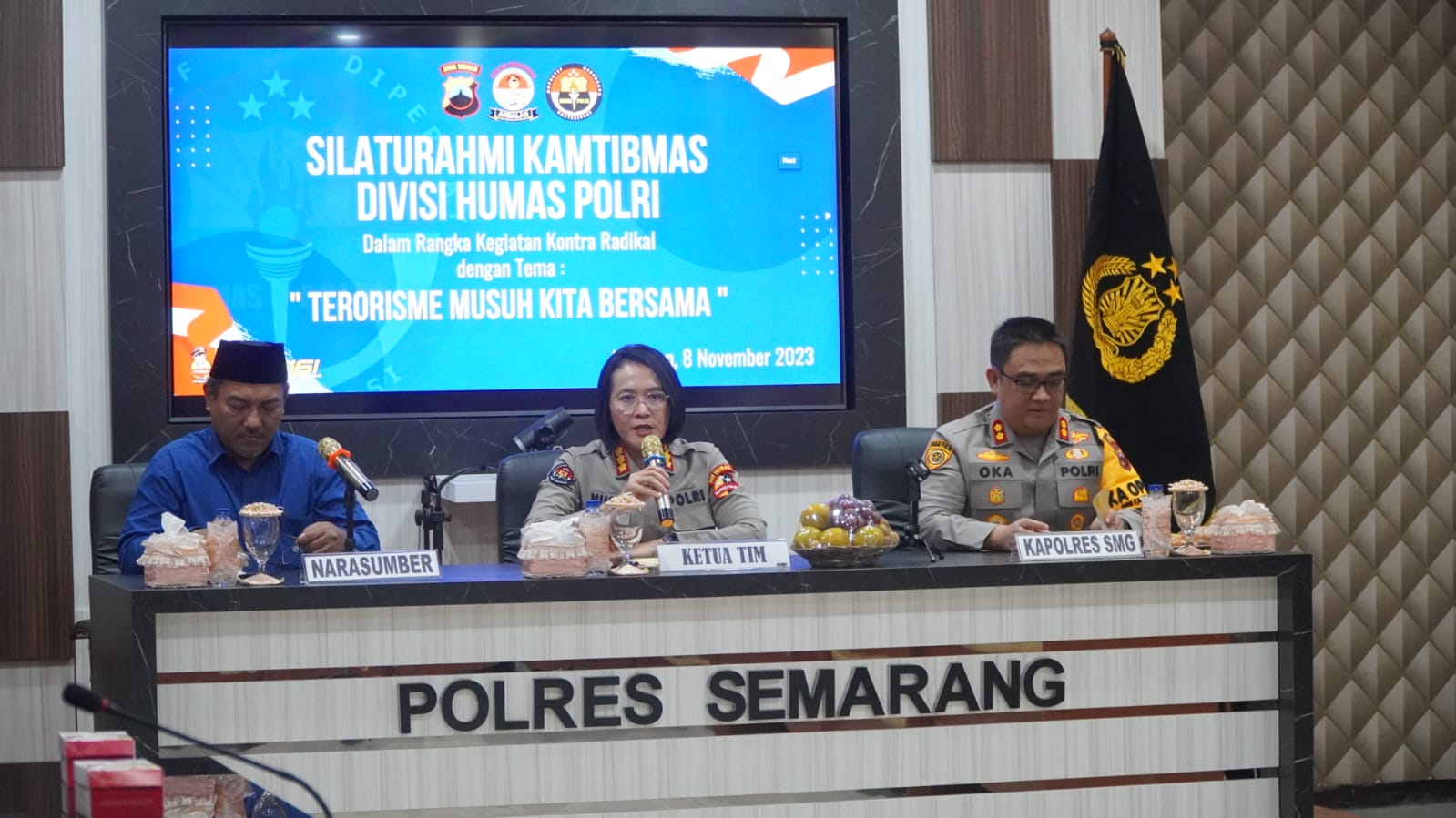 Semarang | mediasinarpagigroup.com – Penyebaran faham Radikalisme di kalangan masyarakat, bukan hanya menjadi tanggung jawab jajaran Kepolisian namun harus melibatkan seluruh lapisan masyarakat, Guna mencegah peredaran paham Radikalisme tersebut, Rabu, 8 November 2023 Div Humas Polri melaksanakan Silaturahmi Kamtibmas di Polres Semarang. Dipimpin oleh Kabag Penum Kombes Pol. DR. Nurul Azizah, S.I.K, M.Si., turut hadir dalam rombongan mantan Narapidana teroris Ustadz Nassir Abbas dan Ustadz Puji.