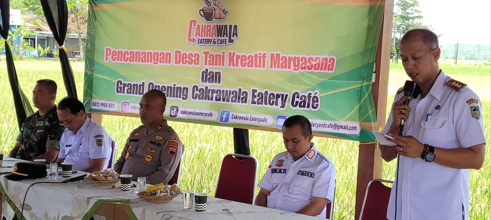 Banyumas | mediasinarpagigroup.com – Program Desa Tani Kreatif merupakan gagasan dari Kepala Desa Margasana Kecamatan Jatilawang Kabupaten Banyumas Dodit Ari Wibowo untuk kembali meningkatkan peran petani dan kelompok tani dalam meningkatkan kesejahteraannya. Pencanangan Desa Tani Kreatif, dan Peresmian Embung serta Grand Opening Cakrawala Eatery Cafe, dilakukan oleh Bupati Banyumas Sadewo Tri Lastiono yang diwakili oleh Camat Jatilawang Bastiar Dwi Haryanto, Rabu 4 Februari 2026 di Pendopo Kelompak Tani Embung Cakrawala Margasana.