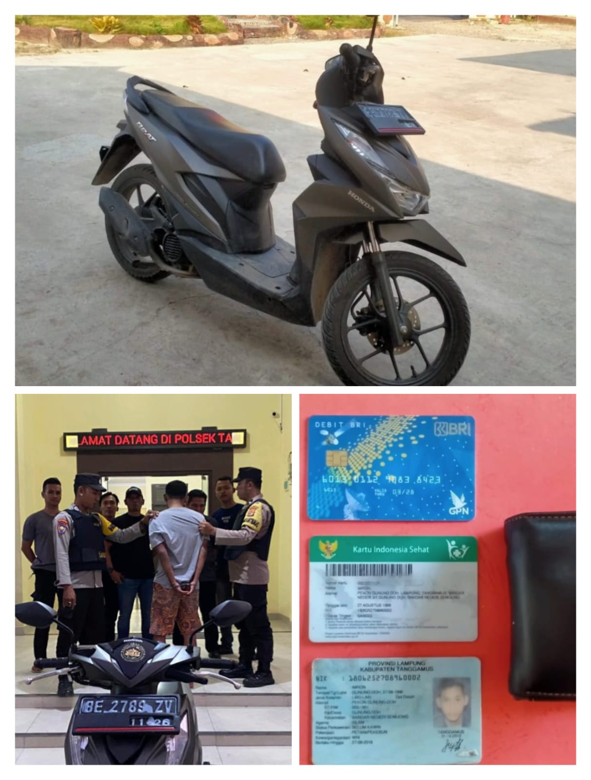 Kapolsek menyebut, dalam perkara tersebut selain mengamankan sepeda motor milik korban berikut kunci kontaknya, turut disita kunci letter T dari tangan tersangka, dompet tersangka berisi KTP, KIS dan ATM BRI warna biru.