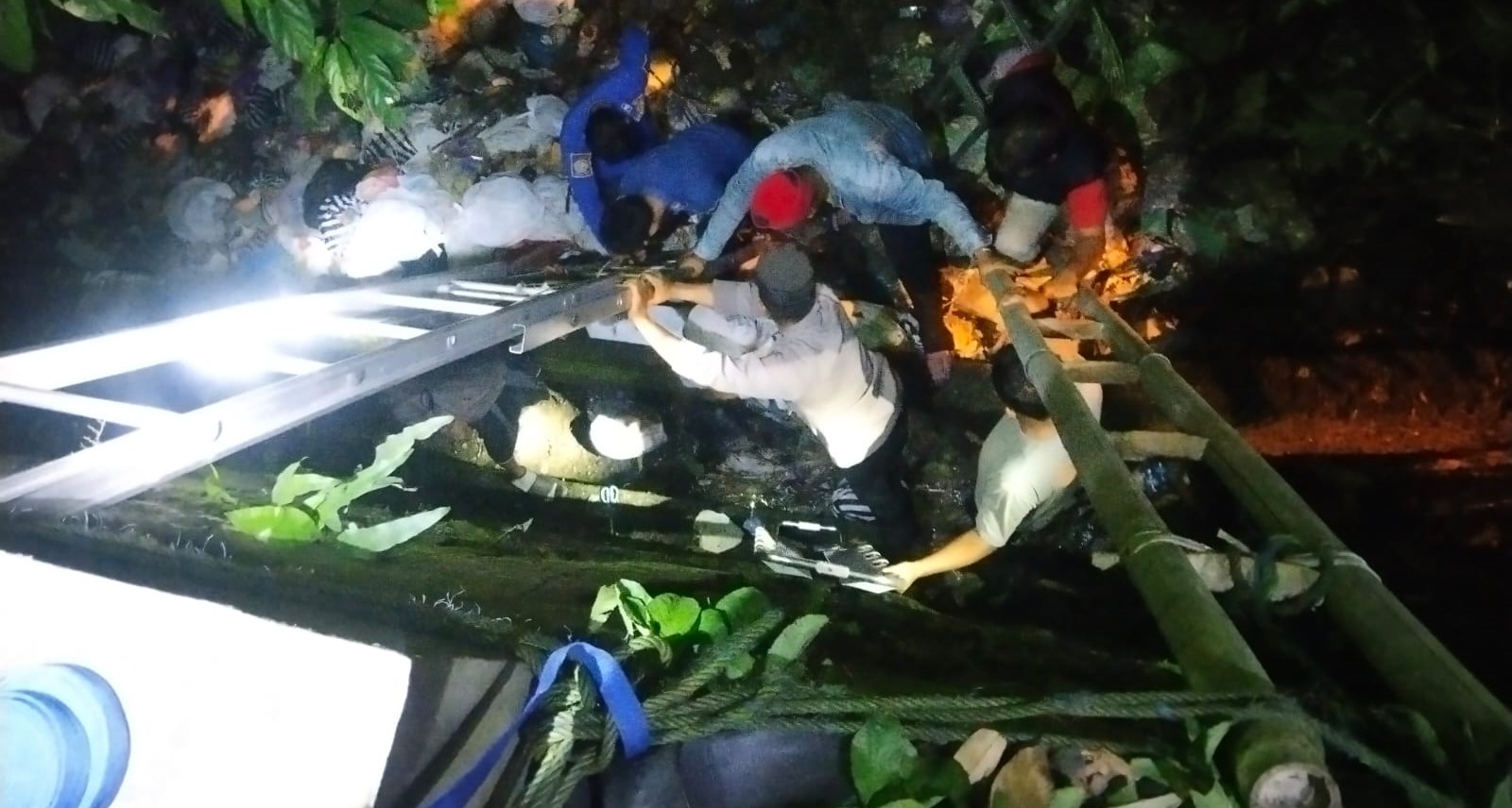Purbalingga | mediasinarpagigroup.com – Dua orang perempuan ditemukan terjatuh di jurang dengan ketinggian kurang lebih tujuh meter samping jembatan Sungai Bulan, Desa Karanganyar, Kecamatan Karanganyar, Kabupaten Purbalingga, Sabtu (5/4/2025) malam.
