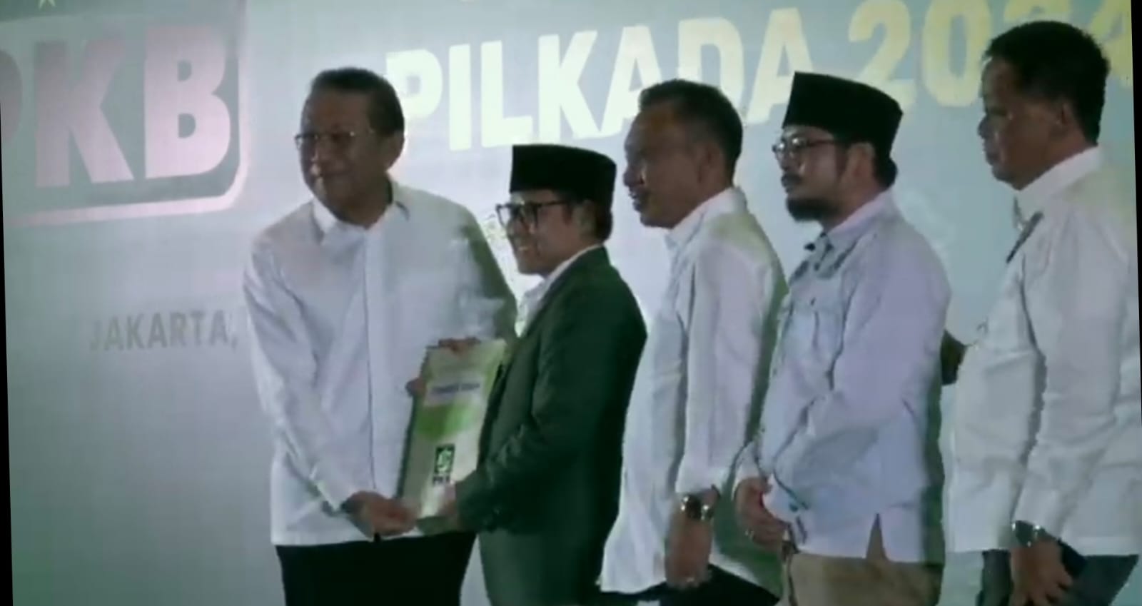 Dukungan itu ditandai dengan penyerahan surat dukungan MODEL B.PERSETUJUAN.PARPOL.KWK yang ditandatangani Ketua Umum PKB, H.A Muhaimin Iskandar (Cak Imin) dan Sekretaris Jenderal PKB, M. Hasanuddin Wahid, di Hotel Fairmont Senayan Jakarta Pusat, Minggu (18/08/2024).