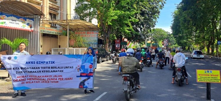 Kegiatan ini diharapkan dapat mengedukasi para pengguna jalan untuk tertib dan berhati-hati saat berkendara, agar fatalitas korban laka lantas dapat menurun. Jasa Raharja sebagai Perusahaan yang diamanatkan oleh Undang-Undang untuk memberikan perlindungan dasar berupa santunan kecelakaan kepada setiap orang yang mengalami luka-luka, cacat tetap atau meninggal dunia akibat kecelakaan yang disebabkan oleh alat angkutan lalu lintas jalan baik didarat, laut dan udara, juga bertanggung jawab untuk mendorong keselamatan masyarakat dalam berkendara dan meningkatkan kesadaran akan pentingnya berlalu lintas yang aman. “Ujar Yansen Adaw” selaku Kepala Perwakilan Surabaya.(Humas/Aqtoris)