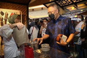 Serang | mediasinarpagigroup.com – Penjabat (Pj) Sekretaris Daerah Provinsi Banten M Tranggono mendampingi Menteri Pariwisata dan Ekonomi Kreatif (Menparekraf) Sandiaga Salahuddin Uno dalam meninjau Pameran Apresiasi Kreasi Indonesia (AKI) 2022 Mall Summarecon Serpong Jl. Boulevard Raya Gading Serpong, Kelapa Dua, Kabupaten Tangerang, Minggu (17/7/2022). Pameran menampilkan 27 finalis AKI untuk Kabupaten Tangerang, Kota Tangerang, dan Kota Tangerang Selatan.