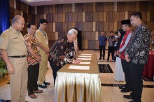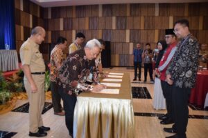 Banyumas | mediasinarpagigroup.com – Pj Bupati Banyumas Hanung Cahyo Saputro memberikan sambutan sekaligus membuka kegiatan High Level Meeting TPID Se-Barlingmascakeb pada Selasa (12/12) di Saphire Ballroom Grand Karlita Hotel Purwokerto. Kegiatan tersebut sekaligus diikuti dengan Penandatanganan Perjanjian Kerjasama (PKS) pemanfaatan data dan/atau informasi harga dan ketersediaan komoditas pangan dalam rangka pengendalian inflasi daerah.