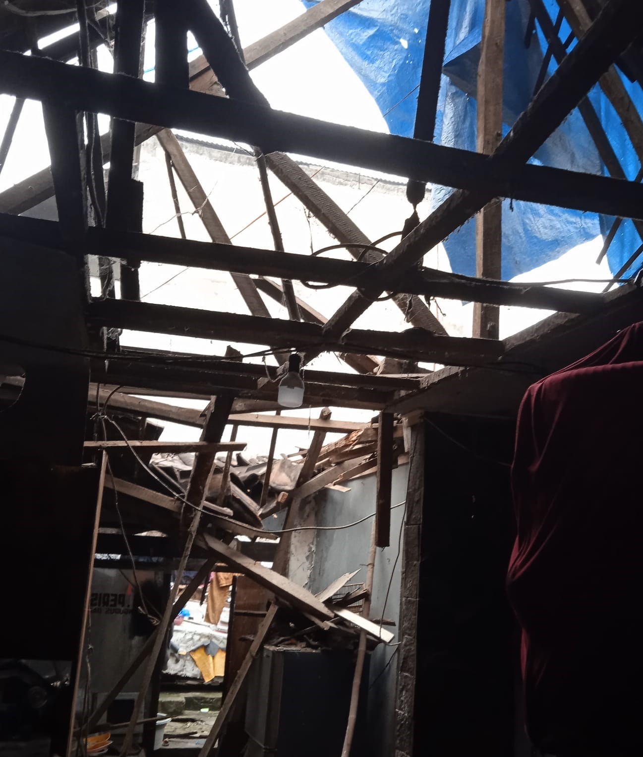 Karena keadaan tidak mampu, dirinya tidak bisa memperbaiki rumah. Sehingga, tadi pagi rumah yang ditinggali roboh dan tidak bisa ditempati.