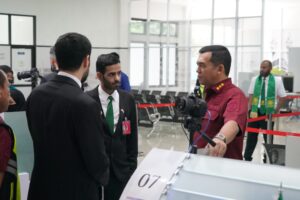 Silmy hadir mengecek kesiapan petugas imigrasi dan pelaksanaan kerja sama Makkah Route. “Alhamdulillah sejauh ini [pelaksanaan] cukup lancar. Di Solo dan Surabaya tahun ini perdana untuk implementasi Makkah Route, jadi kami pastikan semua berjalan baik,” jelas Silmy Karim di Bandara Adi Soemarmo, Solo pada Minggu (12/5/24).