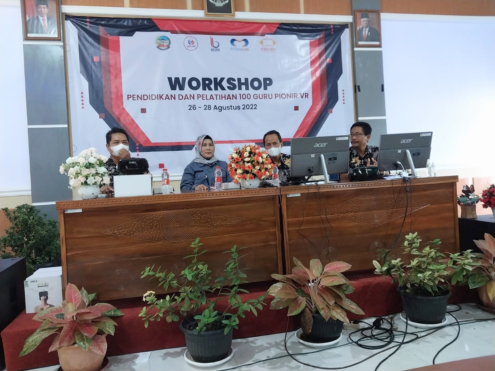 Purwokerto | mediasinarpagigroup.com – Kepala Dinas Pendidikan Kabupaten Banyumas Irawati, SE menilai Banyumas Calakan dan Milealab memajukan pendidikan di Banyumas. Hal tersebut disampaikan saat membuka Diklat 100 Guru Pionir Virtual Reality (VR) Banyumas di SMPN 3 Purwokerto. Diklat tersebut akan dilaksanakan selama tiga hari mulai Jumat – Minggu, 26 – 28 Agustus 2022 yang diikuti oleh 100 Guru SMP se-Kabupaten Banyumas.