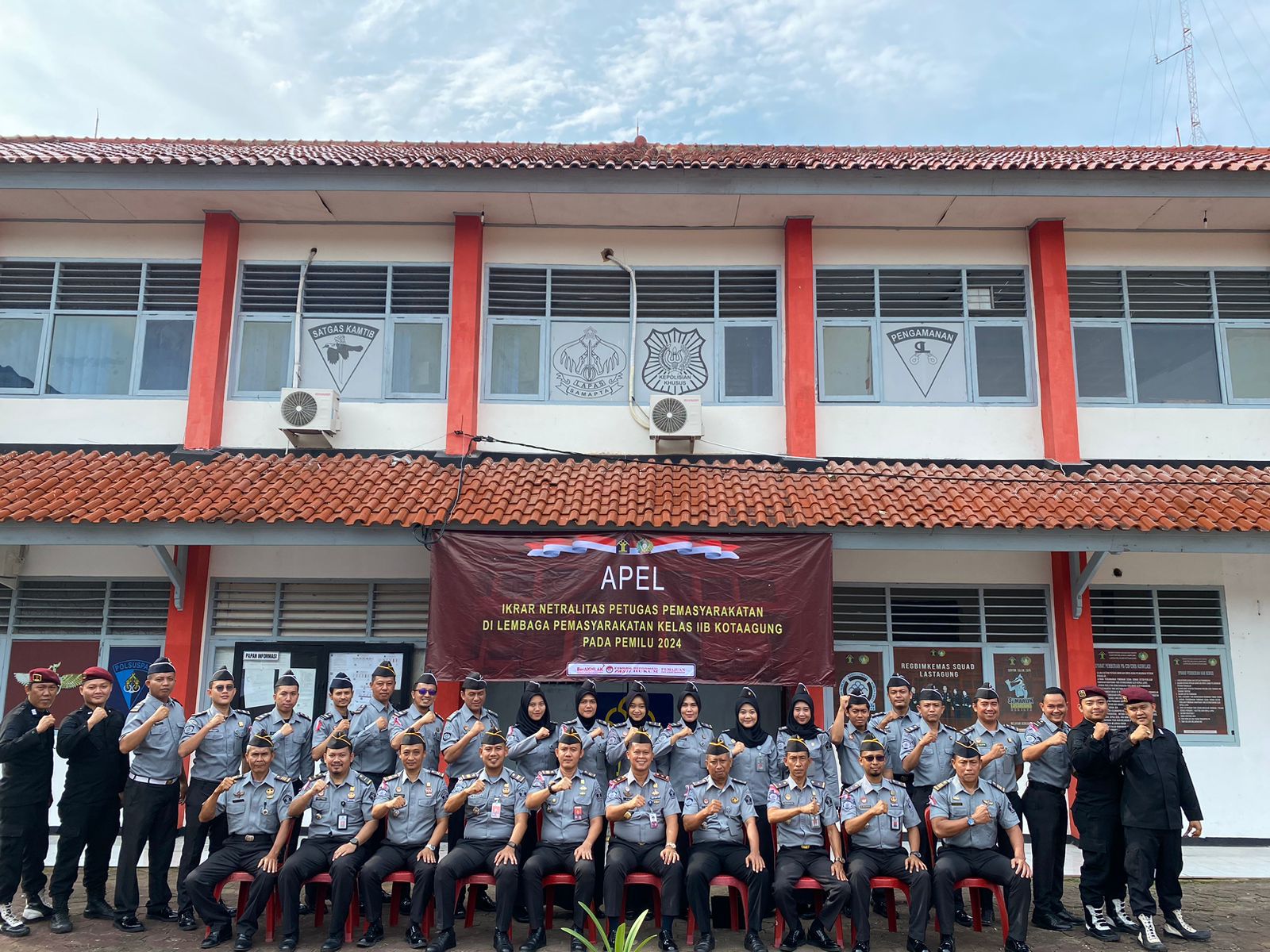 Sebelum melakukan penandatanganan, seluruh Petugas Lapas Kotaagung mengucapkan Ikrar Netralitas Pegawai jelang Pemilu 2024 secara bersama-sama dipimpin oleh Kalapas Kotaagung selaku Pembina Apel. (Merliyansyah)