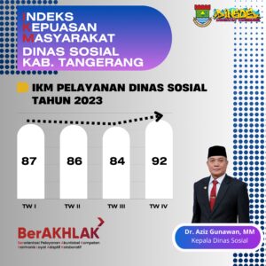 Salah satu wujud pelayanan prima tersebut, lanjut Aziz, indeks kepuasan masyarakat (IKM) terhadap pelayanan publik Dinas Sosial mengalami peningkatan setiap Triwulannya. Pada Triwulan I tahun 2024, misalnya, nilai IKM Dinas Sosial yakni 93,5–meningkat dari TW III dan TW IV tahun 2023 dengan nilai 84,75 dan 92,5.