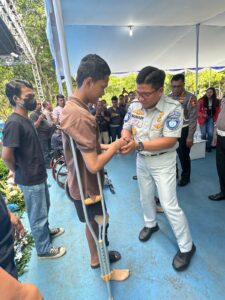 Jakarta | mediasinarpagigroup.com – Jasa Raharja bersama Korps Lalu Lintas Polri memberikan bantuan berupa 7 kaki palsu, 10 kursi roda, dan 10 tongkat siku untuk para penyandang disabilitas akibat korban kecelakaan lalu lintas (lakalantas).