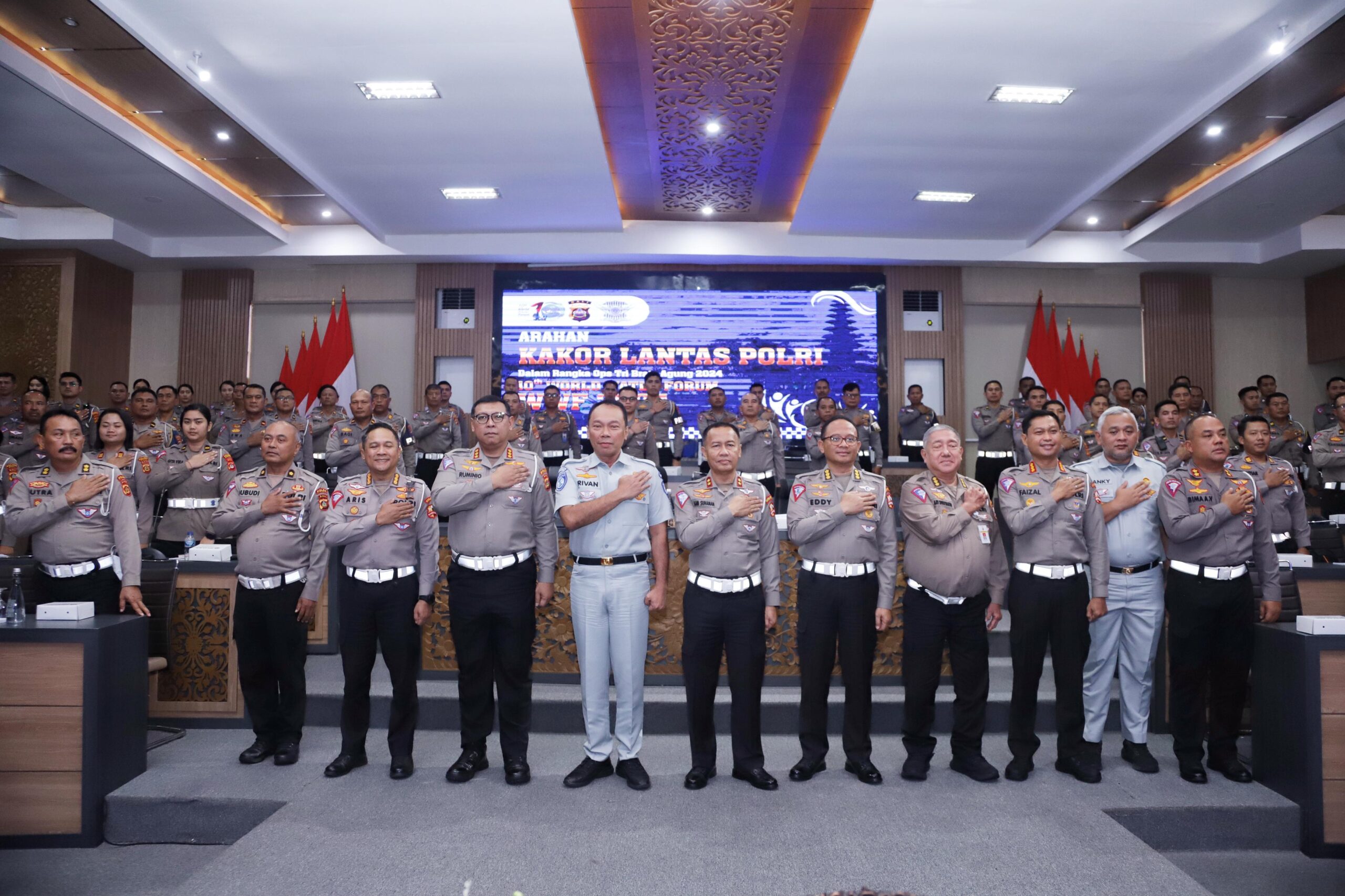 Salah satu upaya Jasa Raharja dalam mendukung agenda akbar tersebut, adalah melalui sinergi dengan Kepolisian, khususnya terkait rekayasa lalu lintas guna memitigasi risiko terjadinya kecelakaan. Direktur Utama Jasa Raharja Rivan A. Purwantono, menyampaikan bahwa keamanan, keselamatan, ketertiban dan kelancaran lalu lintas (Kamseltibcarlantas) dan zero accident merupakan salah satu indikator dari kesuksesan kegiatan ini. “Jasa Raharja siap mendukung pemerintah menyukseskan agenda internasional ini. Tentunya, pelayanan harus menjadi prioritas utama, karena menyangkut acara kenegaraan yang akan mempengaruhi reputasi Indonesia di mata dunia,” ujarnya, saat melakukan penyuluhan bersama Kakorlantas Polri Irjen. Pol. Dr. Drs. Aan Suhanan, M.Si dan Dirlantas Polda Bali Kombes. Pol. Ruminio Ardano, kepada para personel kepolisian di Polda Bali, Jumat (26/04/2024).